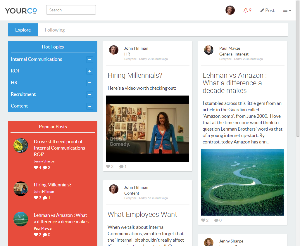 All staff can instantly and easily share their team's successes, interesting links and useful information.