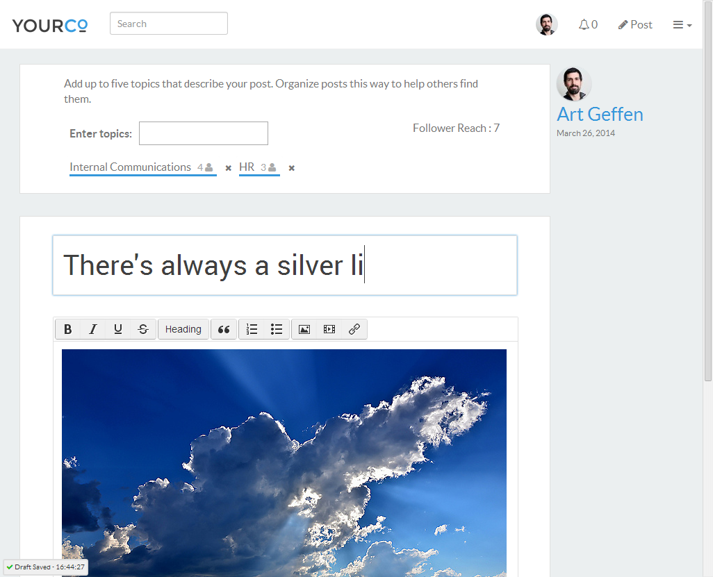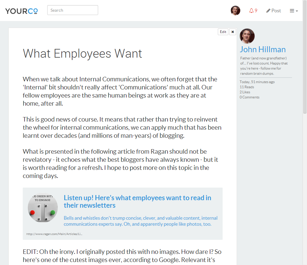 NewsLife handles attachments, images, links, videos, best practices, upcoming events, white papers, suggestions and announcements - anything you might want to publish to groups within your company or organization.